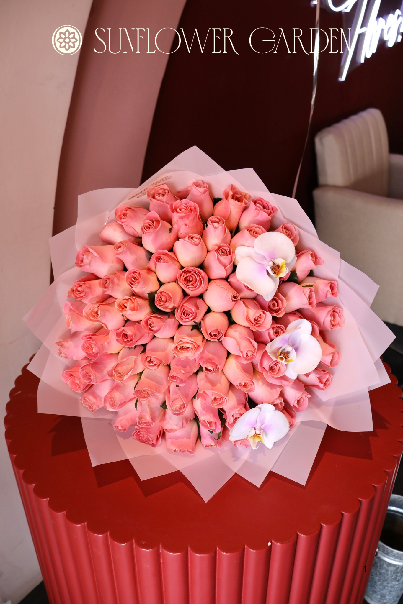 Un regalo que habla por sí solo: un ramo compuesto por 75 rosas rosadas que envuelven cada mirada con suavidad, acompañado de 3 orquídeas que aportan un toque de elegancia etérea. Un arreglo perfecto para expresar sentimientos profundos con la delicadeza que solo las flores pueden transmitir.